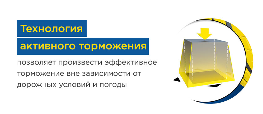 Благодаря ей при торможении увеличивается контактная поверхность автошины, что вне зависимости от погоды значительно повышает надёжность сцепления.