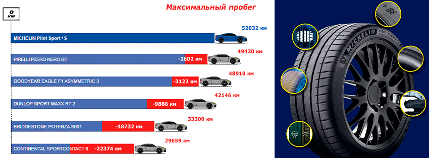 Шины Pilot Sport 4S получили асимметричный «ультра реактивный» протекторный рисунок, действие которого усиливается резиновой смесью, используемой для покрышек, участвующих в гонках «24 часа Ле-Мана».