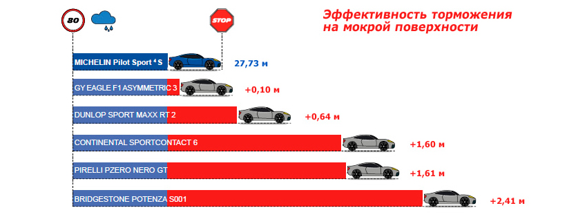Результатом внедрения технологии Bi-Compound стали отличные тормозные свойства Michelin Pilot Sport 4 S.