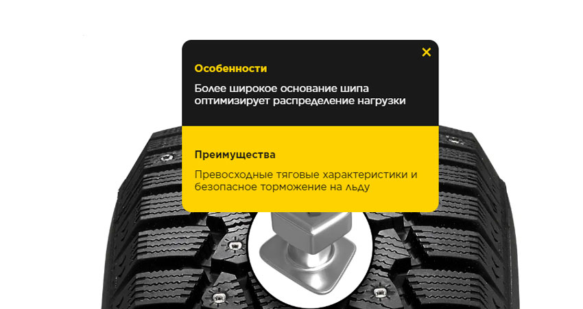 Однако основная стихия шин данной модели – это, конечно же, лёд, «рвать» который призваны 130 «двойных» шипов противоскольжения. Их твердосплавные сердечники из карбида вольфрама при разгоне вгрызаются в обледеневшую поверхность двумя острыми вершинами, а их плоская общая грань включается при торможении.